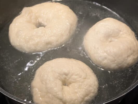 - lépés: A bagel hozzávalóit keverjük össze kézzel vagy dagasztógéppel. 5 percig dagasszuk, hogy jól összedolgozzuk a tésztát.