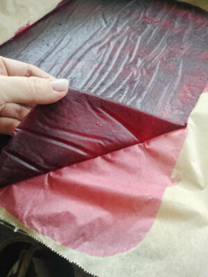 - Vékonyan oszlassuk el rajta a szilva krémet, nagyjából 2 mm vastagon.